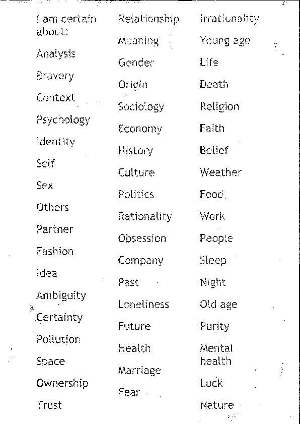 This thought has led me to exploring the importance of chance and probability in the context of my response to what I feel is certain and what is not.