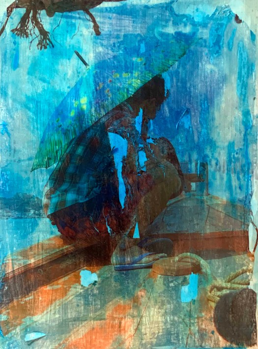 I have started to work on a long process of glazing the already existing underpainting. Every wash of colour was subsequently cleaned of with a sponge and cloth. The objective was to make the painting more moody and dramatic. This technique has also allowed me to reveal individual areas of the glaze while allowing some of the original colour to get through the layers.