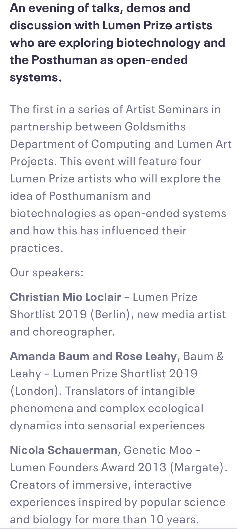 A fascinating and thought provoking evening of presentations by renowned international artists. There is an awful food for reflection and digestion. I feel truly challenged and stimulated to embrace a range of powerful concepts, which were presented during this evening at Goldsmith’s.