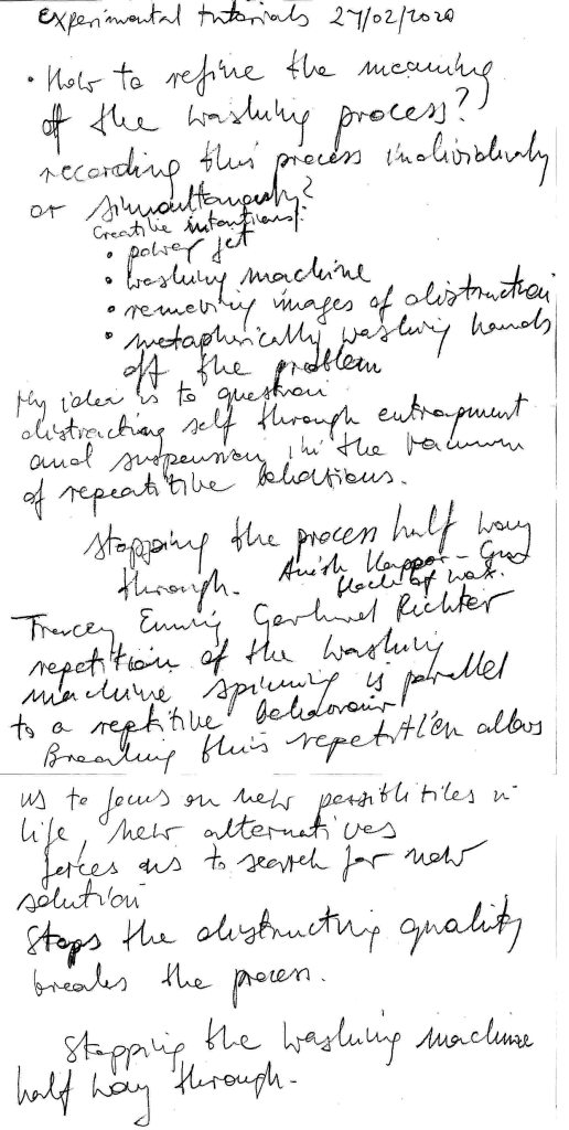 Following a discussion of available spaces for the summer exhibition, we were introduced to the details of an experimental group tutorial. The idea was to identify a conceptual problem for discussion with two partners. The participants were only allowed to use open questions to force the presenting person to reflect on own practice. This was an excellent opportunity to use the Socratic Approach. My group was very helpful and simply superb. I was able to benefit from both Jonathan’s and Donald’s input and feedback.