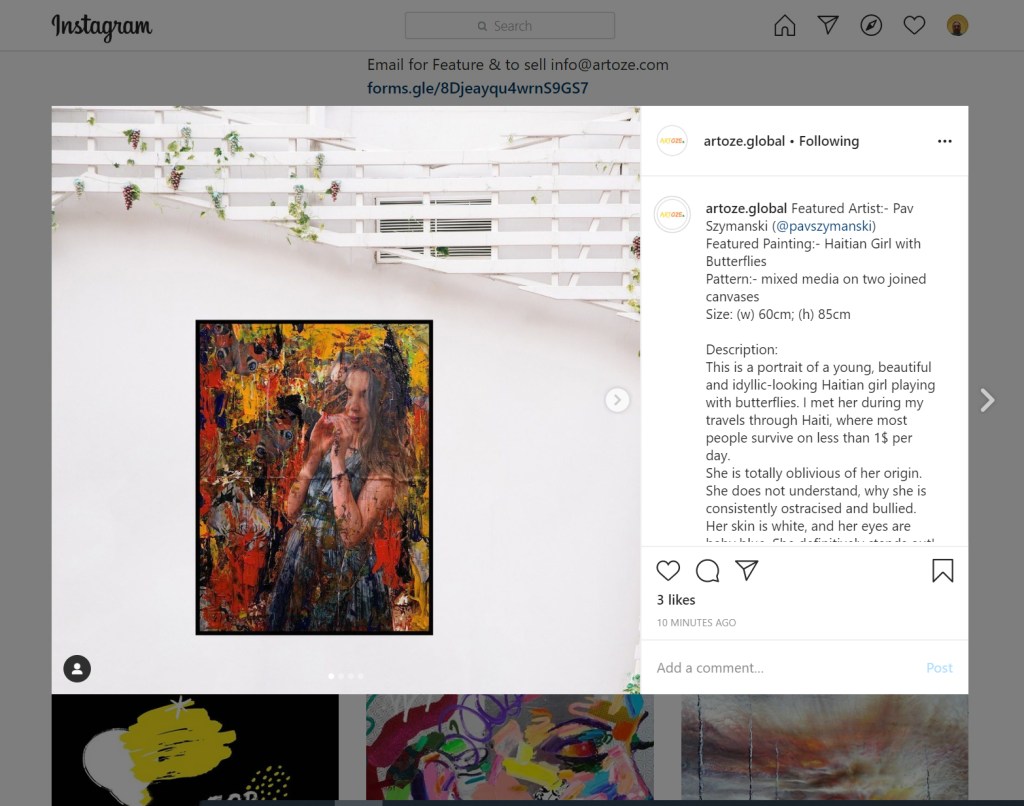I am absolutely thrilled for my work to be selected to be printed in June’s edition of the Artoze.Global magazine. I am also published as a featured artist.