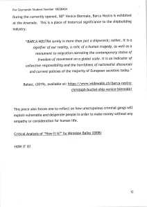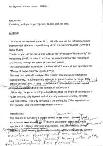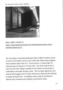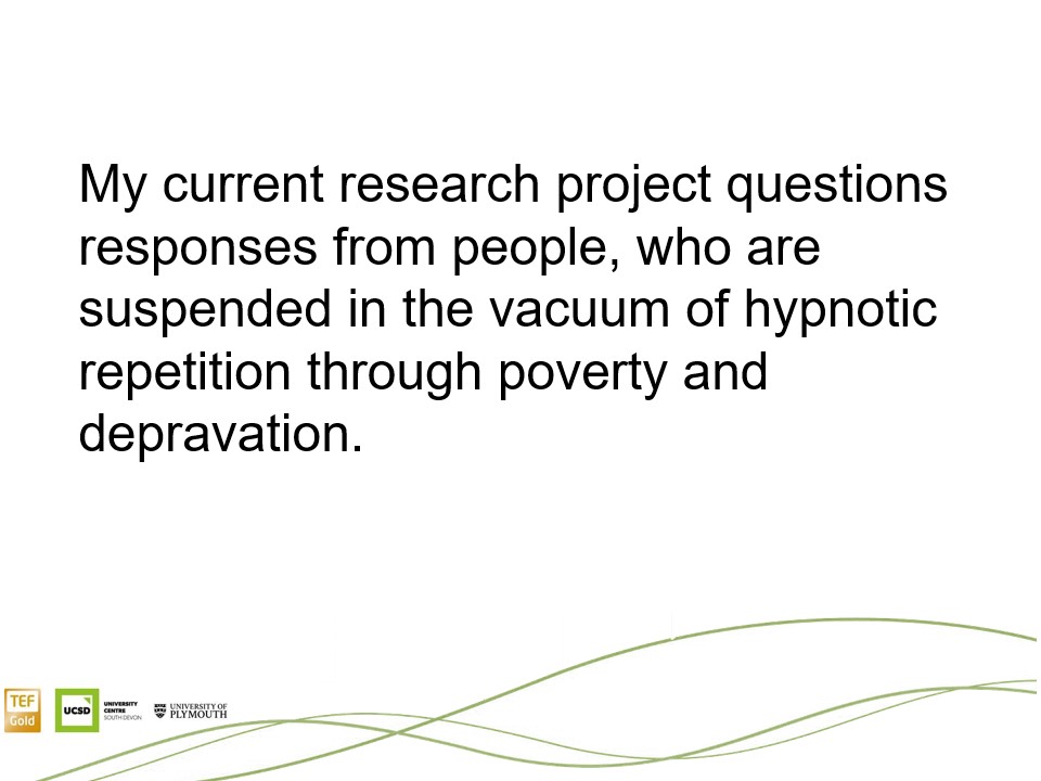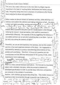 I have presented an outline of my overall intentions for the research statement to Gareth. He was keen to find out what I was hoping to achieve and why. He also asked for the reasons behind the choice of my theoretical framework and its relationship to the dialogue between both art pieces analysed.