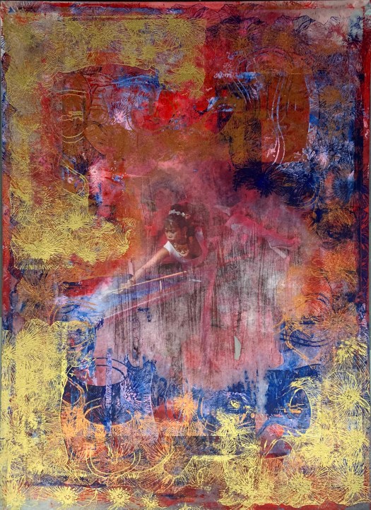 I feel ready to enter the final stage of the development process and initiate a range of quality improvements through drawing on top of the surface, with water soluble pastels. This should allow me to concentrate on detail and make it more intricate and sensitive.