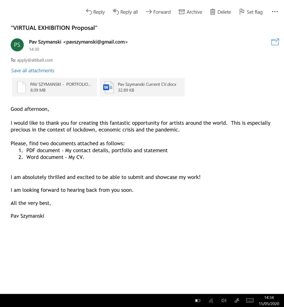 I have submitted my work to the prestigious Altiba9 international exhibition. I have also composed a new portfolio saved as a PDF file, especially for this purpose.